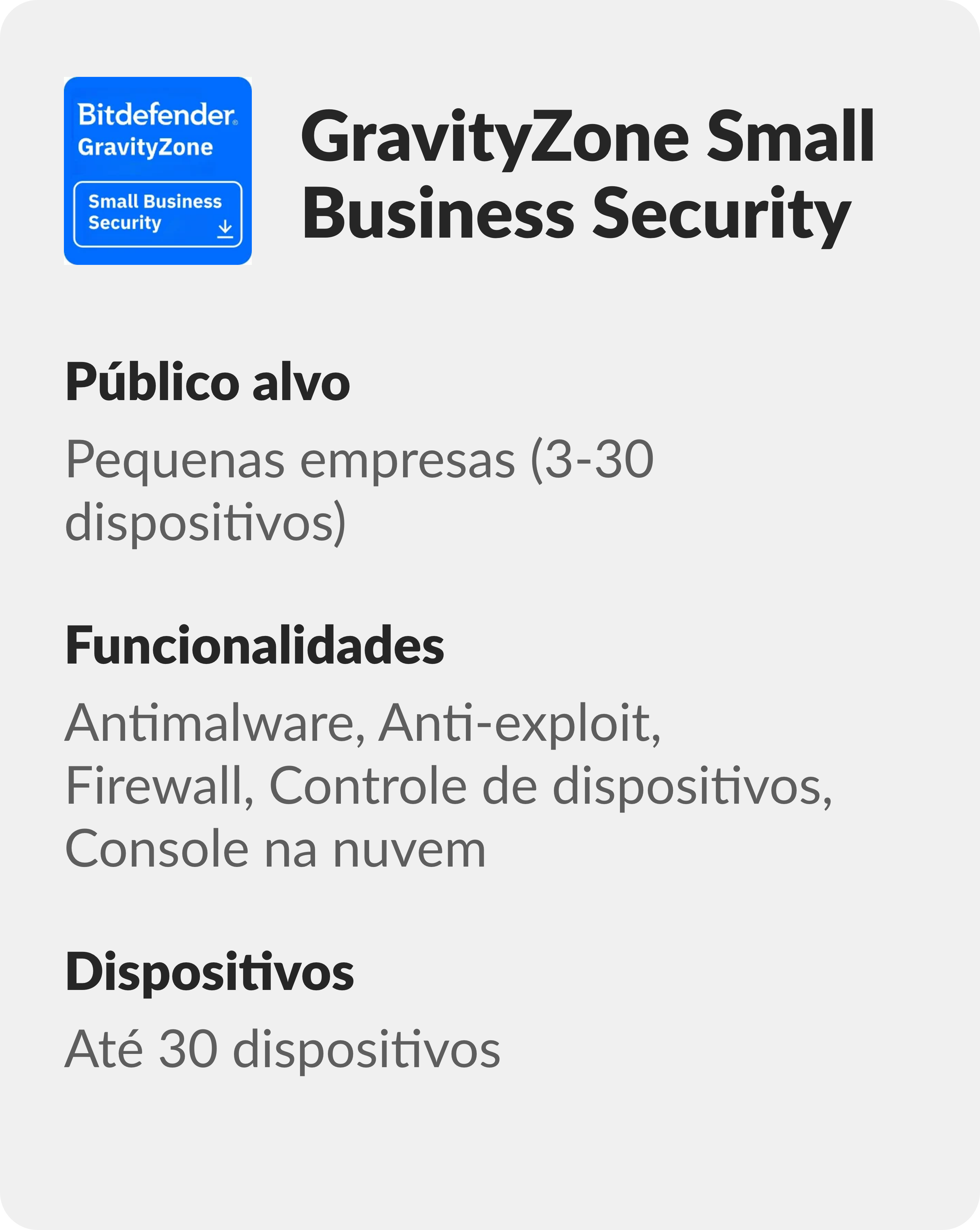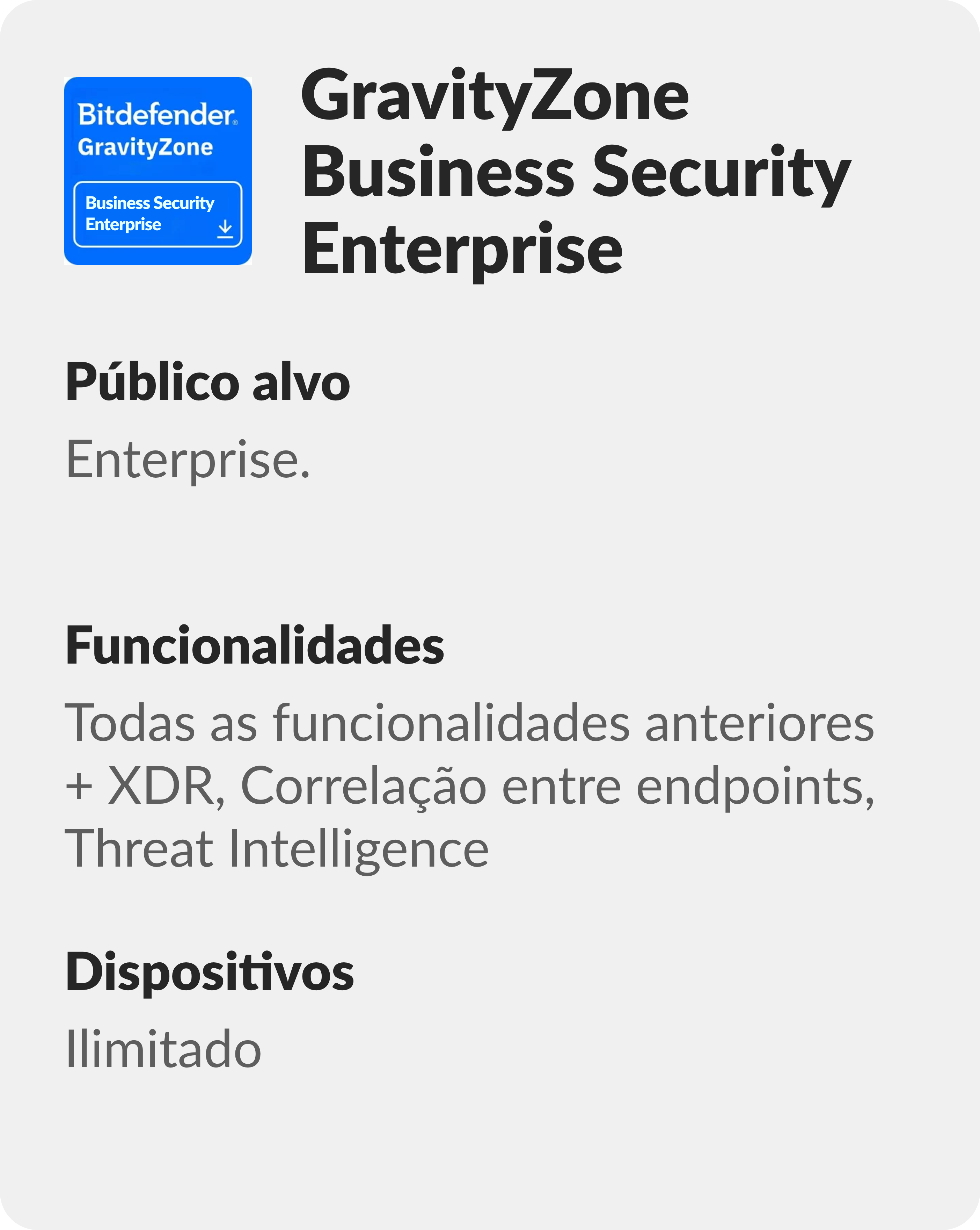 O Bitdefender GravityZone oferece proteção empresarial completa contra ameaças cibernéticas avançadas. Com tecnologia de machine learning e inteligência artificial, protege endpoints, servidores e dispositivos móveis em uma única plataforma unificada, somada à expertise da TrueSec.